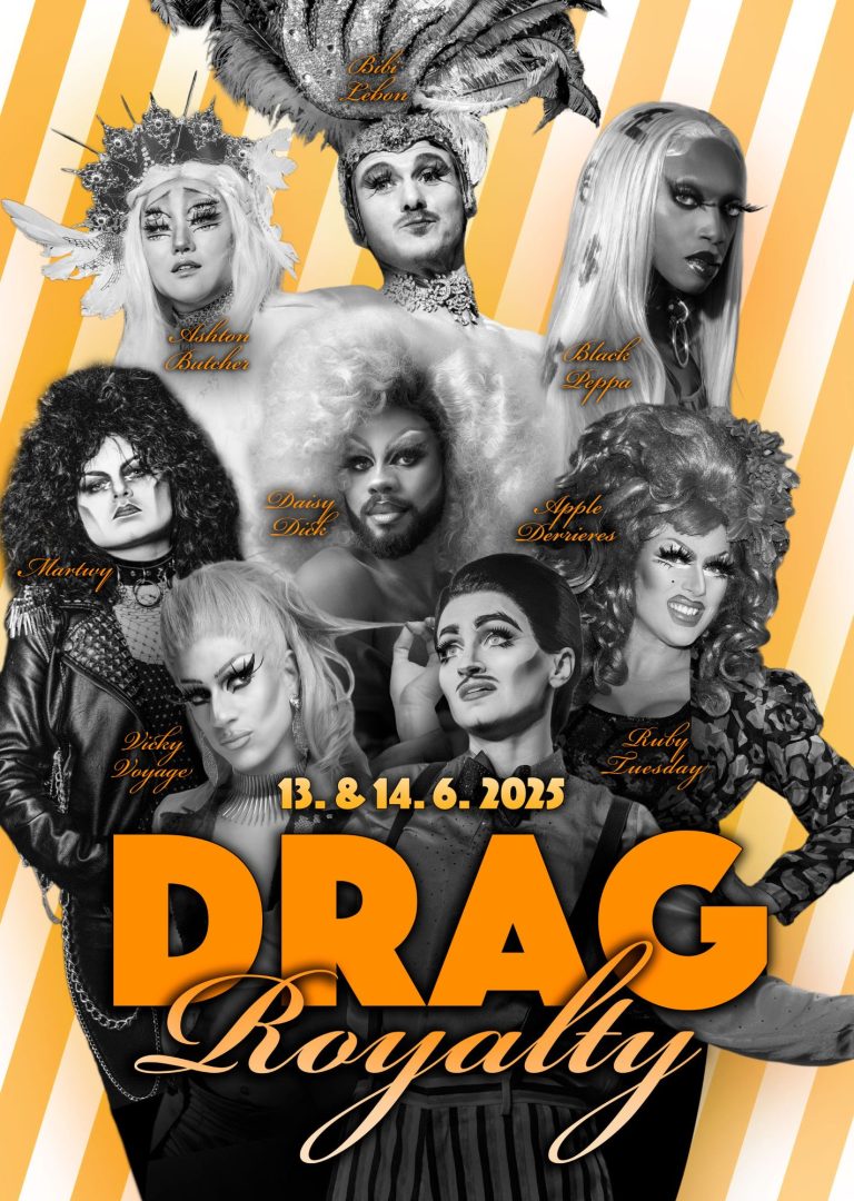 Betty Pearl grüßt und jodelt aus den Tiroler Alpen, Barbie Q nimmt euch mit zu ihren bolivianischen Wurzeln, Leila Yarn bringt mit ihrem italienischen Temperament die Bühne zum Glühen, Perry Stroika hat die Realität satt und entführt euch kurzerhand in seine eigene, Drag Quing Ryan Stecken lässt mit seiner Stimme Grenzen verschwimmen, Janisha Jones beginnt einen Ausflug in andere Galaxien und Ruby Tuesday fegt wie ein Orkan allerorts bestehende Geschlechterrollen hinfort.